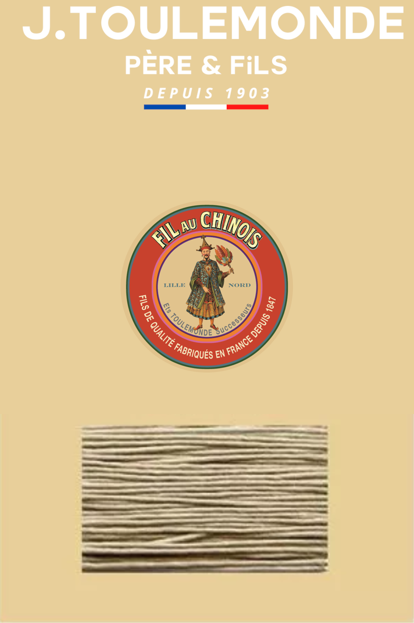 This cabled thread is a twisted yarn that is assembled a second time with multiple strands and then twisted again "wet." The cabling increases resistance and gives the thread a very round shape, making it ideal for leather goods. Available in a range of 60 colors.